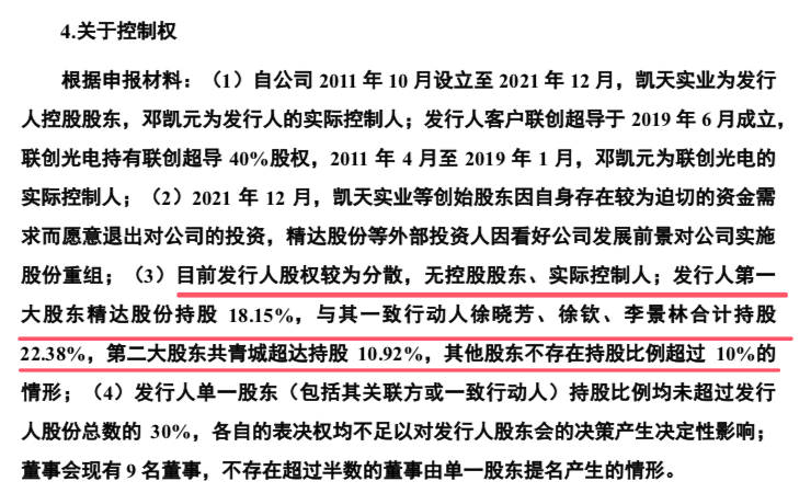 自公司2011年10月设立至2021年12月,凯天实业为公司控股股东,邓凯元为实际控制人;公司客户联创超导于2019年6月成立,联创光电持有联创超导 40%股权,2011年4月至2019年1月,邓凯元为联创光电的实际控制人。
